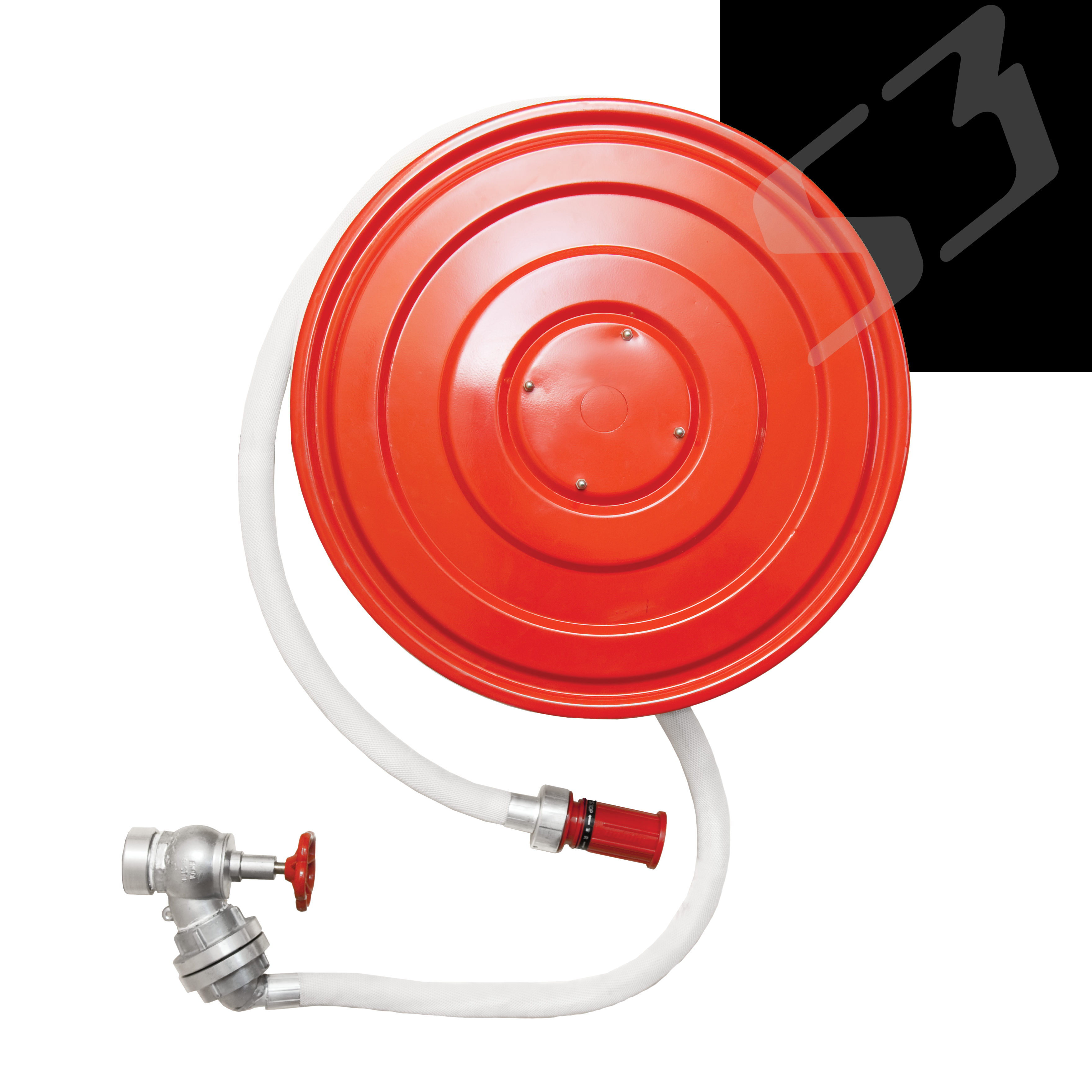 Hydrant wewnętrzny z wężem półsztywnym 33 mm o długości 20 m lub 30 m wersja stała.