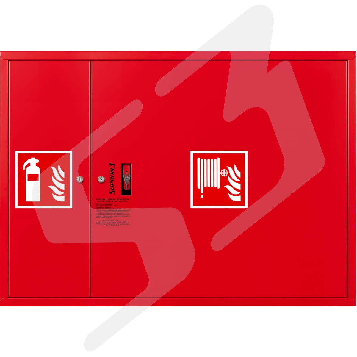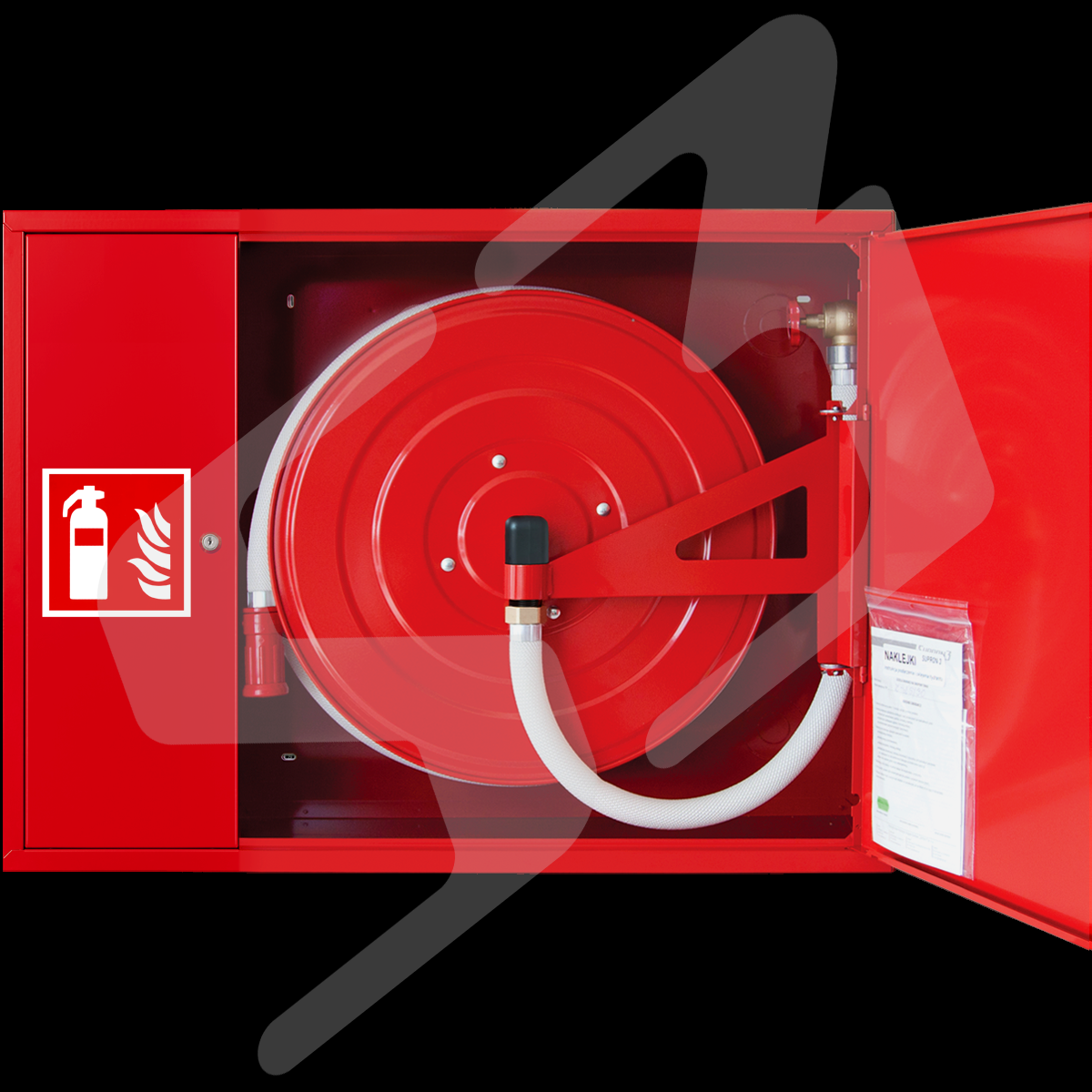 szafka hydrantowa standardowa - blacha stalowa lakierowana farbą poliestrowa fasadowa typ Facade z miejscem na gaśnicę obok zwijadła