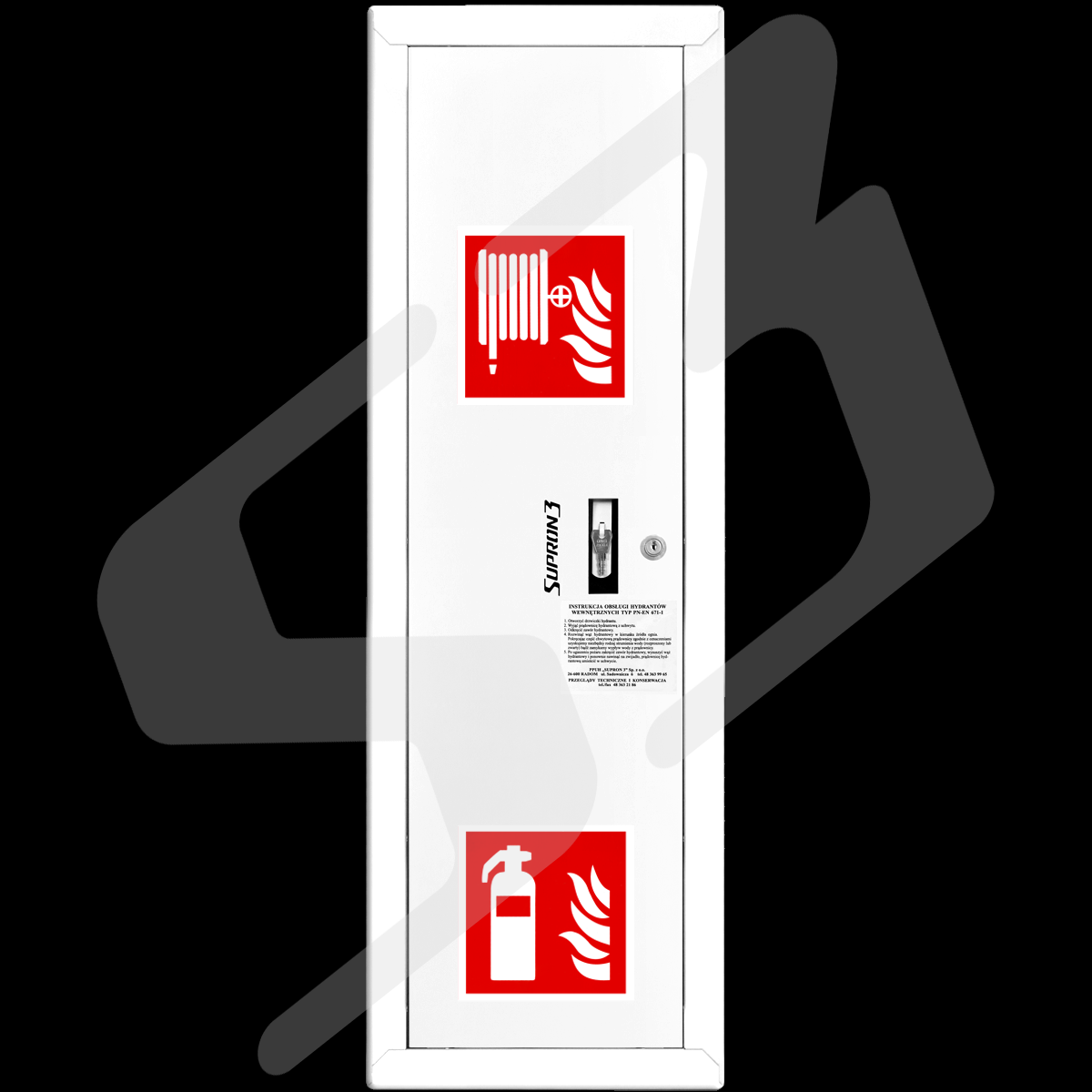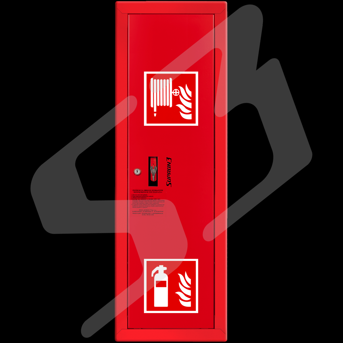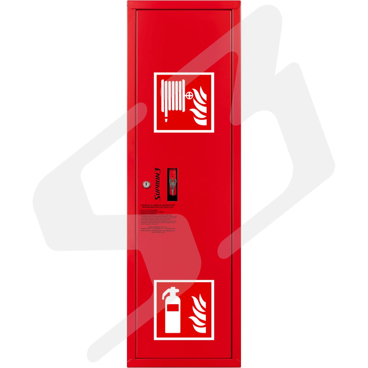 szafka hydrantowa standardowa z miejscem na gaśnicę - blacha stalowa lakierowana farbą poliestrowa fasadowa typ Facade