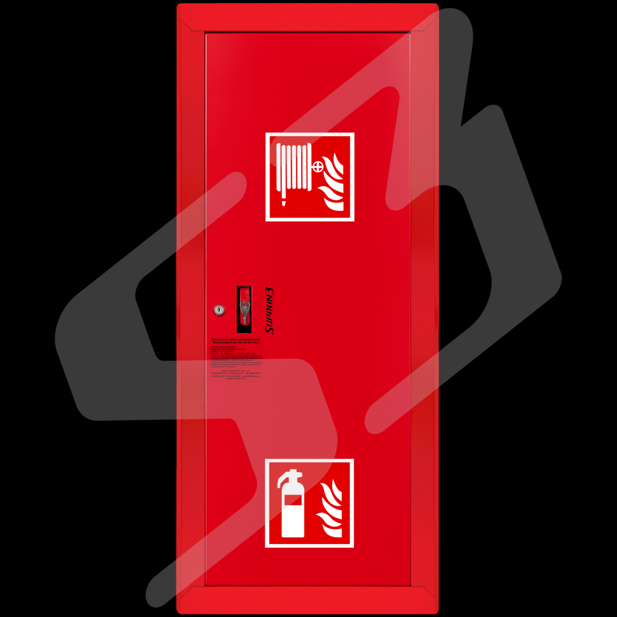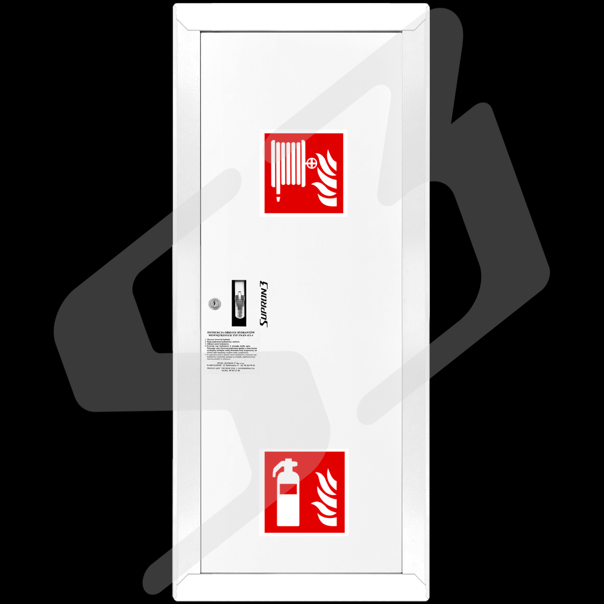 szafka hydrantowa ocynkowana malowana farbą poliestrowa fasadowa typ Facade z miejscem na gaśnicę