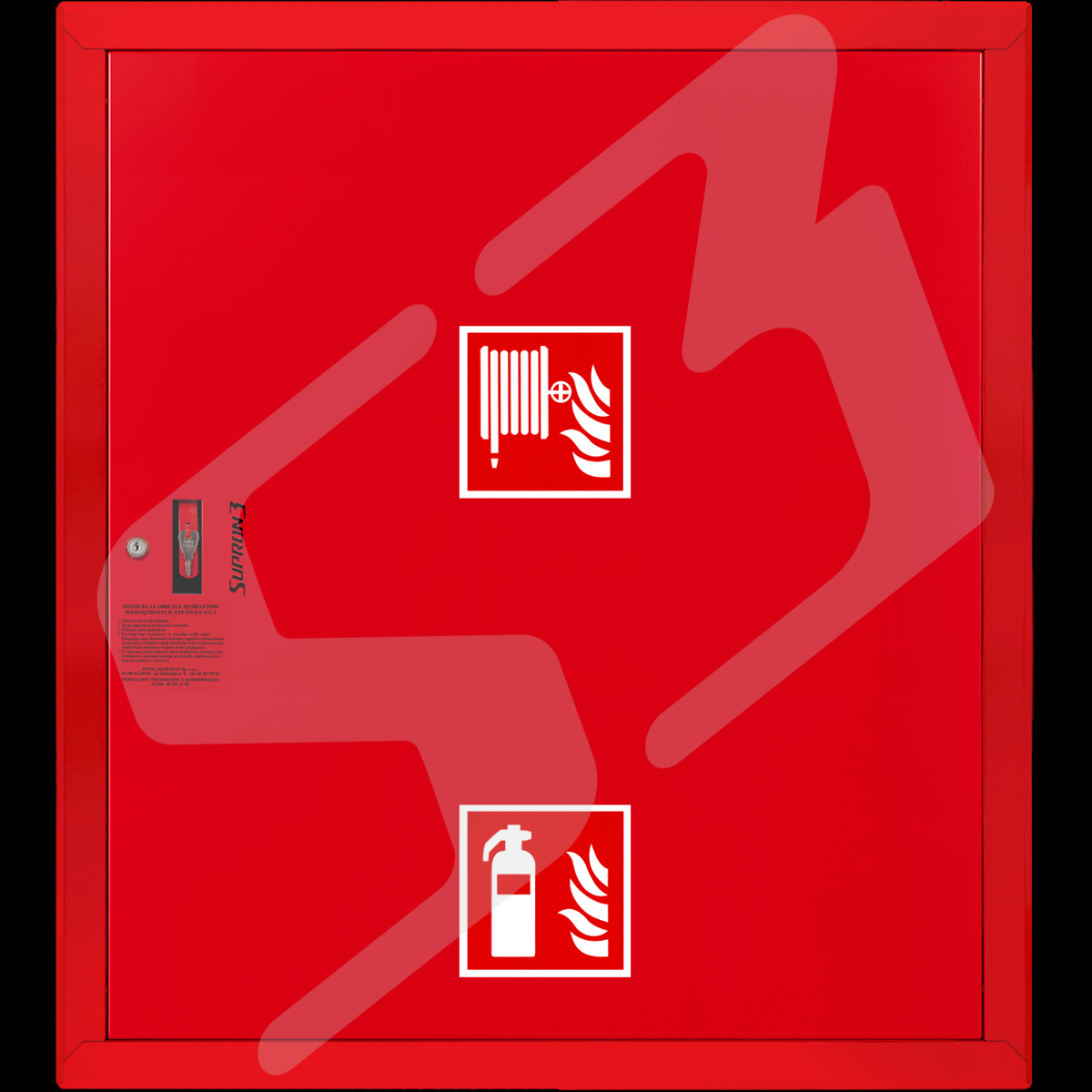 szafka hydrantowa ocynkowana malowana poliestrowa fasadowa typ Facade z miejscem na gaśnicę pod zwijadłem.