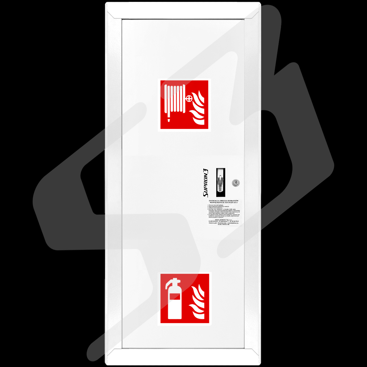 szafka hydrantowa ocynkowana malowana farbą poliestrowa fasadowa typ Facade z miejscem na gaśnicę