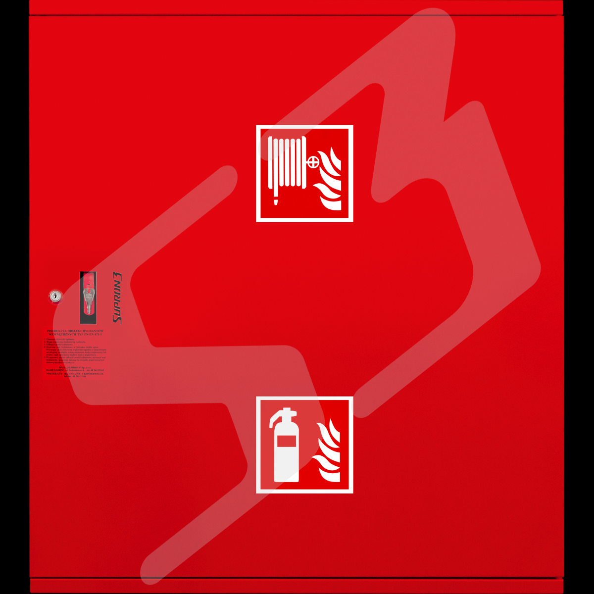 szafka hydrantowa ocynkowana malowana poliestrowa fasadowa typ Facade z miejscem na gaśnicę pod zwijadłem.