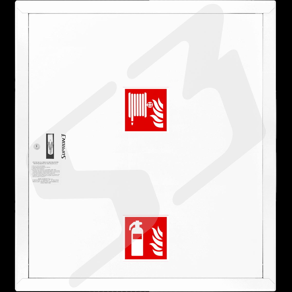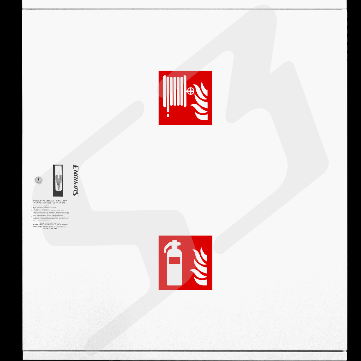 - oznakowanie: znak 'Hydrant" i "Gaśnica" zgodnie z normą PN-92/N-01256/01 + tabliczka informacyjna zgodnie z normą PN-EN 671-1