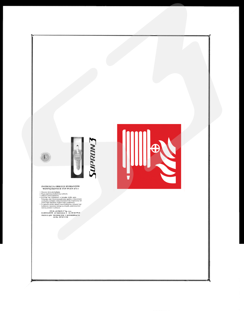 - oznakowanie: znak "Hydrant" zgodnie z normą PN-92/N-01256/01 + tabliczka informacyjna zgodnie z normą PN-EN 671-2