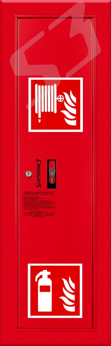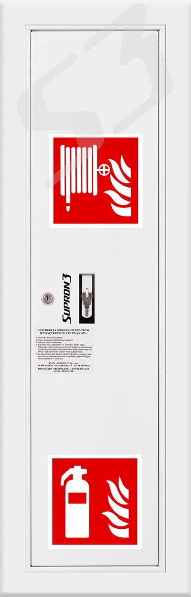 szafka hydrantowa standardowa - blacha stalowa z miejscem na gaśnicę lakierowana farbą poliestrowa fasadowa typ Facade
