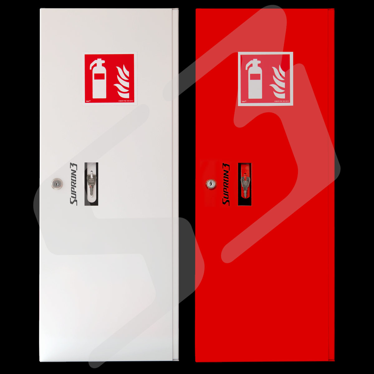 - STANDARD blacha stalowa lakierowana farbą poliestrowa fasadowa typ Facade. Drzwi pełne. Szafki wykonane są z blachy o grubości 1 mm i odpowiednio oznakowane znakiem "Gaśnica". Kolorem standardowym jest kolor czerwony (RAL 3000).