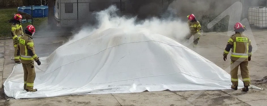 Profesjonalna płachta izolacyjna przeznaczona do zastosowania podczas pożarów pojazdów spalinowych i elektrycznych oraz jako element konstrukcyjny ściany